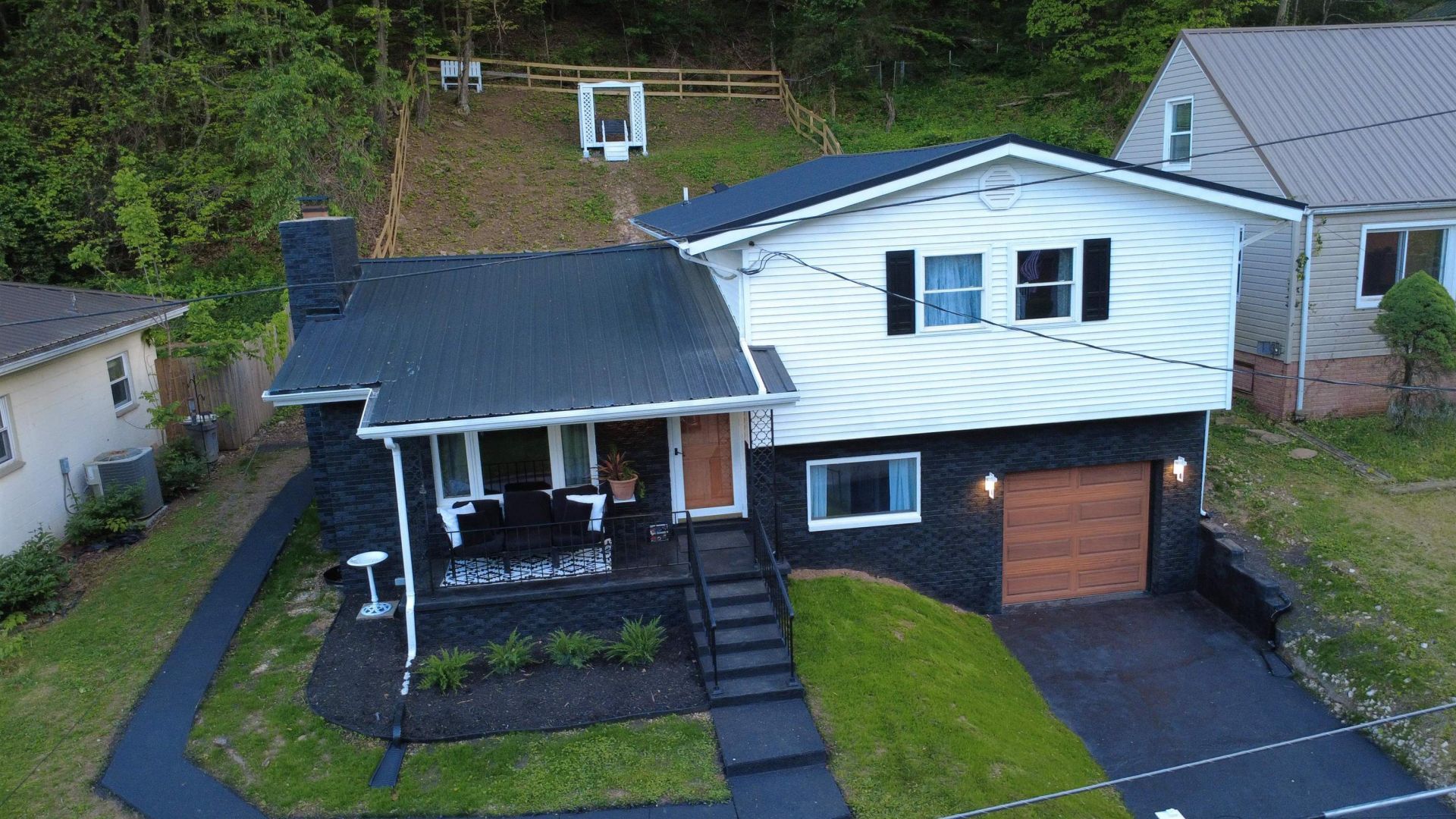 Move in ready 4 Bedroom, 2 Bath home with various upgrades Throughout! Featuring a new 40-year metal roof with updated flashing, a brand-new Goodman gas heating and air conditioning system, along with a new Richmond hot water heater and upgraded 200-amp electrical service with a new breaker panel. The beautifully remodeled kitchen includes new cabinetry, butcher block countertops, a custom island, rectified polished porcelain tile flooring and backsplash, and matching stainless appliances. A new Maytag washer and dryer are also included. Both bathrooms have been fully updated with modern fixtures and stylish tile finishes, and the dedicated laundry/mudroom has been completely redesigned. Additional updates include refinished hardwood floors, new engineered hardwood flooring, all new interior and exterior lighting and fans, updated window treatments, and fresh professional-grade paint throughout the interior and exterior. Exterior improvements include pressure-washed siding, stained concrete driveway, garage floor, patio, porch, walkways, and decking. The property also features a new smart garage door with updated motor and hardware, a newly installed custom backyard fence with gates, and recently serviced gutters. 12 Month Guard Home Warranty!