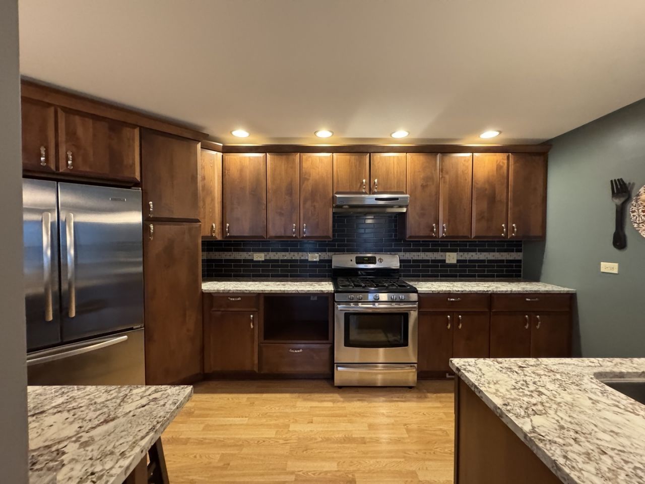 Beautifully updated 3-bedroom, 2-bath first-floor end-unit coach home with attached 1-car garage in highly desirable Fox Run. This bright and spacious home features an open foyer leading to a sun-filled living and dining area with a wall of windows and access to a private patio overlooking green space. The updated eat-in kitchen offers granite countertops, stainless steel appliances, breakfast bar, quality cabinetry, and modern flooring. The primary suite includes a walk-in closet and private bath, while two additional generously sized bedrooms share a full hall bath. In-unit laundry with storage adds convenience. Bedroom fresh paint. Enjoy well-maintained grounds, open lawn space, and a prime location near Fox Run Golf Course, parks, shopping, dining, and major expressways, all within highly rated schools. Tenant responsible for utilities. No pets or smoking. Minimum 700+ credit required. Available immediately.